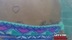 Uma bela jovem morena passa exibe seu corpo gostoso na piscina. Ela excita o cara, mostra sua bela bunda e vai para casa chupar o pau dele e foder.