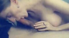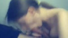 Na frente da câmera, essa vagabunda perde toda a vergonha e consegue chupar o pau do cara de sorte.