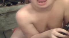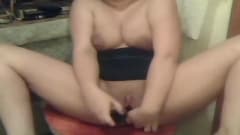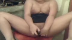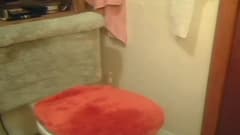 Esta jovem está trancada no banheiro e começa a se masturbar, colocando um vibrador junto à concha para sentir o prazer da penetração