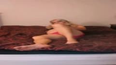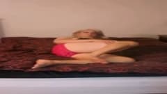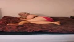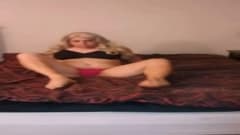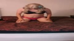 Este homem gordinho usa roupas íntimas femininas e uma peruca loira para provocar e se empolgar na frente da câmera