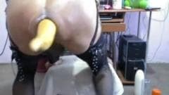 Neste vídeo, vemos um homem vestido com roupas de renda desfrutando de um imenso brinquedo erótico !