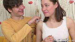 Essa garota nunca pensou que iria foder com um de seus colegas de classe. Enquanto eles estão fodendo no sofá...