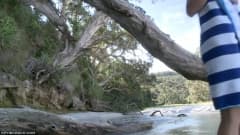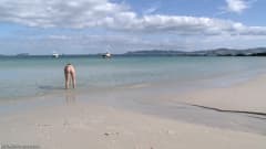 Esta praia é um paraíso em que esta mulher bonita pode ficar muito animada ao tocar seu corpo com prazer. Tem a buceta linda e gostosa