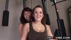 Duas belas lésbicas com belos peitos se lambem para você e depois puxam um cinto de vibrador para um bom sexo com vibrador