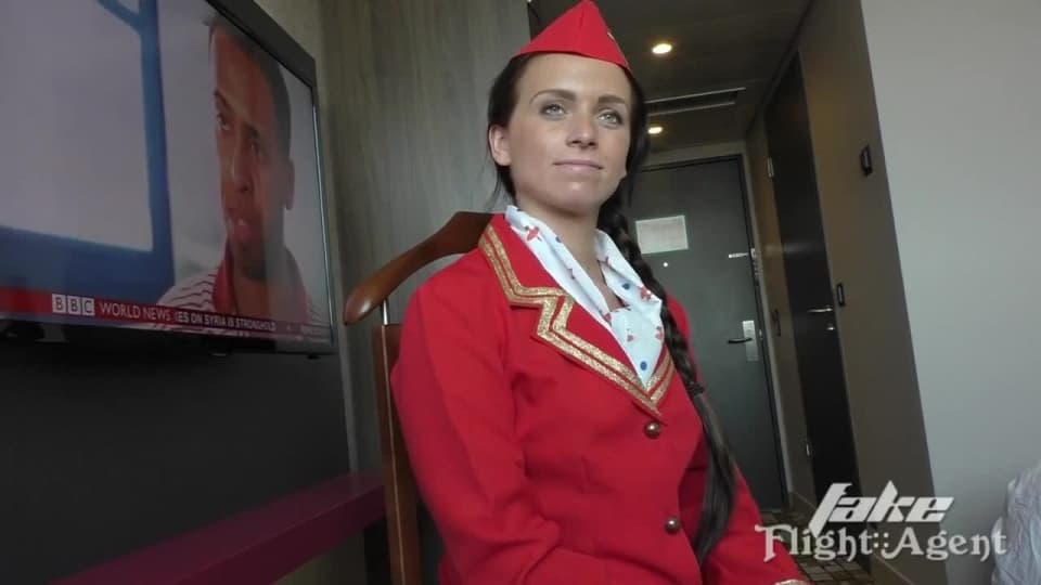Assistente de bordo marota fodendo com um cliente negro de pica enorme