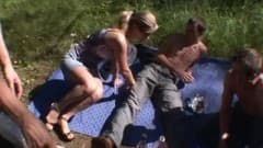 A linda e jovem loira sendo fodida por vários homens na floresta. Outra aventura pornô selvagem trazida a você por boafoda.com!