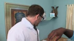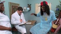 Um negro vai ao consultório médico e seu médico o recomenda uma sessão com sua enfermeira. Aquela garota negra de rabo grande vai levantar seu pau.