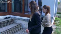 Lésbicas lindas trabalham em uma empresa e, antes do trabalho, gostam de se esconder atrás do prédio do escritório, acariciar, lamber e tocar