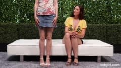 Uma ruiva e uma morena são entrevistadas para descobrir se são boas o suficiente para serem dominadas por um belo galo negro.
