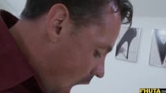A MILF loira de seios grandes é fodida com força e profundamente no cu