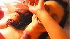 Sua buceta peluda fica completamente preenchida com esse belo pinto