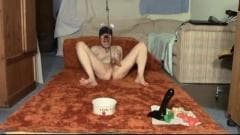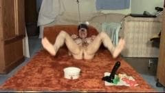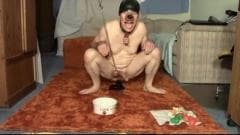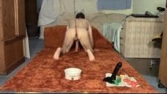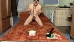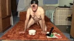 Esse cara tem um fetiche e se disfarça de animal enquanto se masturba com todos os seus brinquedos sexuais.