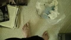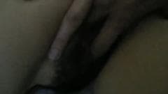 O namorado dela está em casa e com o celular dela e vai gravá-la enquanto enfia o dedo na buceta peluda. Isso a deixa excitada ao máximo com as mãos.