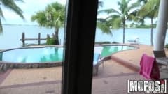 Essa gostosa vai se tocar e se acariciar através das roupas. Ela deixa o cara louco e depois paga um boquete e fica de quatro pra ser comida!