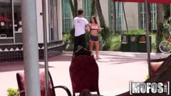 Essa gostosinha vai se exibir fazendo alongando no jardim. Ela chupa o pau do cara ao ar livre e vai pra casa pra ser fodida com força!