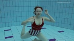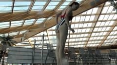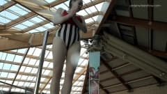 Esta linda mulher despe-se na piscina pública fria para nos mostrar seus seios naturais e seu belo corpo em forma. Aproveite!