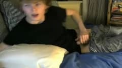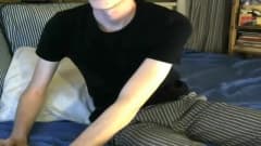 Esse jovem gay de cabelos cacheados se masturba deitado na frente da câmera e mostra a todos seu pau grande e seu cuzinho apertado!