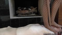 Esta será uma cena muito dolorosa, mas agradável, porque esta mulher tem a ideia de amarrar seu macho e depois esmagar seu pênis com o pé