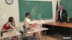 Se há uma coisa que a bela atriz pornô Jojo Kiss gosta, é poder ter sexo na escola com o professor que adora fodê-la a cada vez.