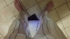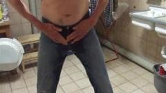 Para esse cara ficar excitado, ele precisa molhar as roupas. É um tipo de fetiche com o qual ele gosta muito. O apito fica muito difícil.