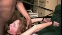 Um homem negro com um pau enorme subjuga e fode sua esposa loira e a amarra e a trata como uma escrava sexual
