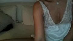 Como ela está sozinha e se sente muito quente, ela não tem cueca e ela pode ver sua buceta peluda, com o qual ela vai se divertir muito se masturbando