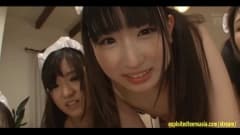 Este homem tem várias japonesas fofas sempre disponíveis para foder em casa. Toda vez que elas querem sexo, elas se sentam em seu pau duro.