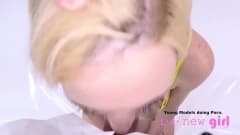 Esa garota loira tem olhos como doces e nos hipnotiza mostrando como ela chupa um pinto até ficar duro e ejacula nela.