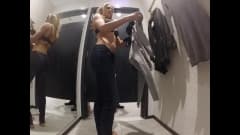 Esta câmera revela muitas das coisas que acontecem nos vestiários das lojas. Essas moças pegam seus dildos para se masturbarem lá.