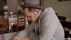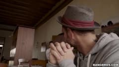 Essa linda morena chupa muito bem e, com seus peitos grandes, está deixando esse cara ultra excitado louco de tesão enquanto ele bate nela com seu pau.
