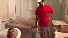 O entregador faz uma entrega especial para uma jovem ultrafresca com uma tentadora roupa íntima vermelha.
