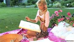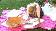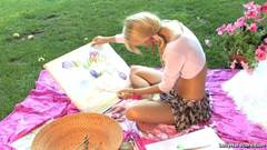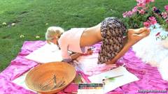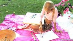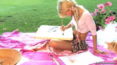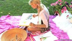 Esta queridinha loira pode ter algum talento para a pintura, mas o seu dom mais natural é esfregar o seu buraco num genade caralho!