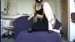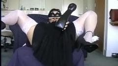 Essa morena mascarada está cheia de vontade de levar um punho. Ela tem um dildo de punho mas vai adorar é quando o cara enfiar sua mão fechada na buceta!