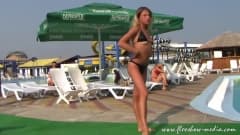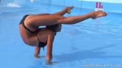 Essa loirinha gostosa não vai foder, porém ela deixa você imaginar o que ela poderia fazer na cama com o seu corpo lindo e flexível!