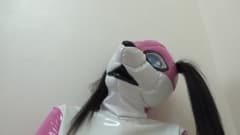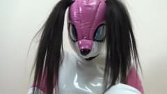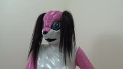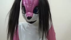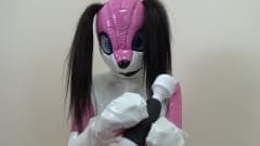 Uma jovem asiática veste um terno de cachorro para que um cara vestido de marciano foda sua buceta. Não perca isso!