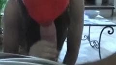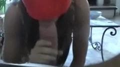Para que não a reconheçam chupando esse pau, essa morena decidiu colocar um capuz grande para cobrir parte do rosto enquanto chupa.