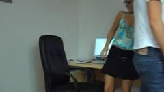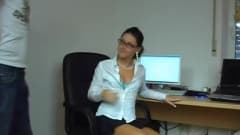 Essa secretária é uma morena que fica muito excitada quando está no escritório e decide dar prazer a um homem que a acompanha e toca na concha.