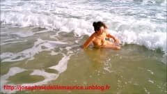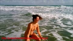 Madura e peluda aproveita nua na praia