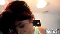Está linda jovem morena está realmente com muita fome de pau. Depois de mentir para sua mãe, ela se joga para chupar e foder com o grande pau que a espera!
