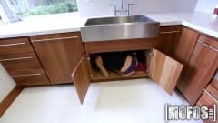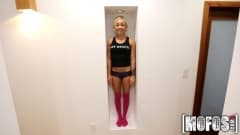As baixinhas são as preferidas desse cara que vai se divertir com uma gostosinha loira. Ele vai dar o pau para ela chupar e mete na bocetinha apertada de 4