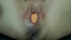 Ela decidiu se masturbar hoje de uma maneira um pouco diferente, então decide colocar uma laranja na buceta para sentir um prazer diferente.