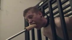 Este garoto gay é preso e amarrado enquanto uma máquina de sexo penetra sua boca para causar uma excitação muito forte e saborosa.