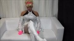Esse transexual passivo tem imenso prazer em se acomodar em um vibrador, enquanto toca seu pau. Veja como ele fica excitado e ejacula esguichando!