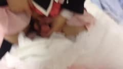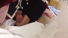 Este jovem gay asiático se veste e coloca uma peruca vermelha para chupar o pau de seu filho.