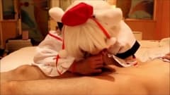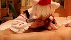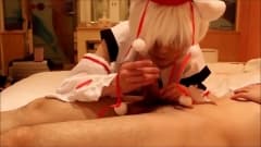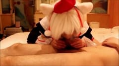 Um omem passivo vestido em estilo cosplay se diverte chupando e masturbando silenciosamente o pênis pequeno de seu parceiro.