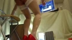 Quando essa transexual descobre o que é um bate-papo sexual, ela se torna uma fã. Vestida com sua lingerie sexy, ela coloca enormes vibradores no cu