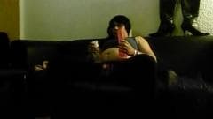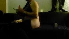 Esse transexual maduro está cheio de tesão e vai se divertir enfiando um grande consolo no cuzinho enquanto bate uma punheta! Que delícia, heim!