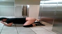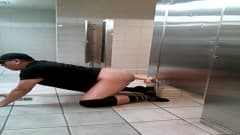 Aqui vemos um homem gordinho que entra em um banheiro público e começa a se masturbar com um vibrador que pode ser preso a qualquer parede.