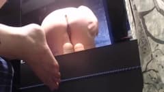 Essa transexual fica muito excitada massageando os pés com creme e se masturbando com seu brinquedo sexual.