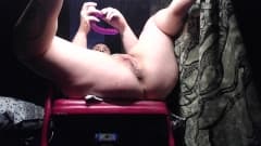 Esta mulher amadora BBW senta-se em frente ao espelho com as pernas abertas. Ela se masturba com a ajuda do seu dildo duplo. Isso lhe dá prazer.